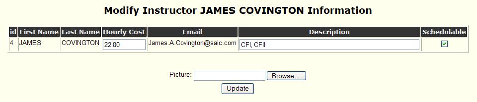 ·         Description - enter a description for this instructor (usually the FAA ratings). This is only used for information in the instructor display pages.
